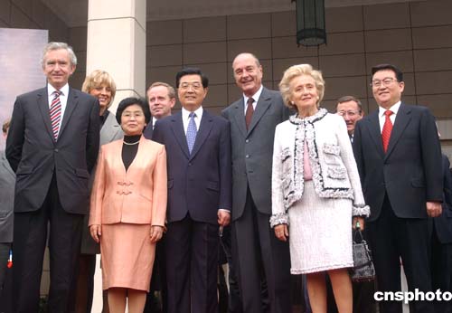 中新社北京十月十日電(記者李靜)“法國印象派珍品展”今天在中國美術館開幕,中國國家主席胡錦濤和在華訪問的法國總統希拉克,以及兩國元首的夫人一道觀看了畫展,法國奧賽博物館館長樂莫瓦納兼任全程解說。