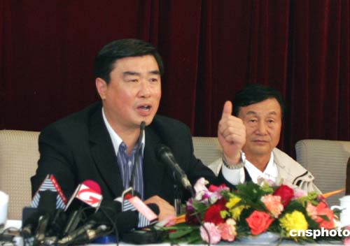 北京時間10月26日20點30分,中國足協副主席閻世鐸在北京大寶飯店召開的新聞通氣會上稱,2004中超暫停降級,剩余聯賽照常進行。會議由新聞官董華主持,薛立、楊一民、南勇、張吉龍等9位足協副主席與會。中新社記者:武仲林