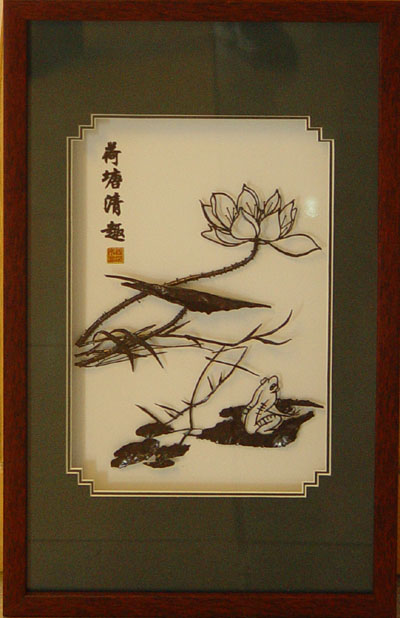 鐵畫是中國工藝美術(shù)百花園中一朵獨特的奇葩。它植根于蕪湖,起源于清代康熙年間(1662—1722),距今已有300多年歷史了。創(chuàng)造人是蕪湖鐵匠湯鵬(字天池),傳聞他同畫家肖尺木(字云從)為鄰,“目窺其潑墨勢”,受到啟發(fā),于是以錘代筆,以鐵為墨,以鉆為硯,將筆墨藝術(shù)融匯于爐錘焊接之中,一舉創(chuàng)造了鐵畫,賦予頑鐵以藝術(shù)的生命。其作品有山水、人物、花鳥、蟲魚、書法等,神態(tài)各異,無不入妙。鐵畫一經(jīng)問世就受到人們的喜愛,不但“遠(yuǎn)客多購之”,而且“名噪公卿間”,連皇親貴族也“一笑傾金貲”來購物。文人墨客更是推崇備至,稱贊湯鵬為“鐵冶神工”,可以“百煉化為繞指柔”,“直教六法為洪爐”。清代詩人康發(fā)祥在他的詩中說:“誰將鑌鐵作畫本,奇巧獨有蕪湖人。九州之鐵不鑄錯,居然觸手能成春。是畫是鐵技微至,惟妙惟肖形逼真。”`