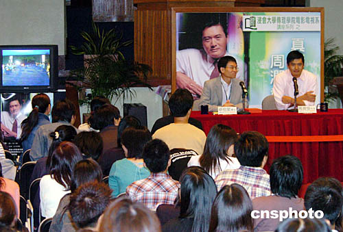 平素學術(shù)氣氛濃厚的香港浸會大學校園,今日卻滲透出一種“星味”來。原來,周潤發(fā)出現(xiàn)校園,與大學生真情對話。難得一睹巨星風采,一眾接受高等教育的大學生也瘋狂起來,原本嚴肅論電影的座談會,變成了周潤發(fā)影迷聚會。