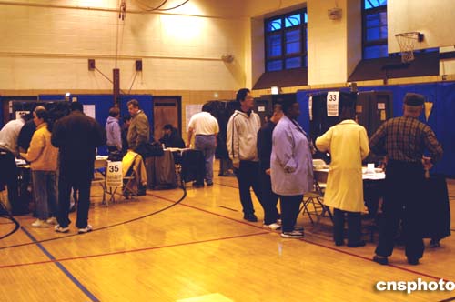 在紐約法拉盛的一間選舉站,選民們一早就開始排隊投票。作者:趙海燕