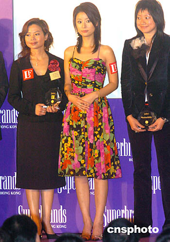 影視紅星林心如4日晚出席在香港演藝學(xué)院舉行的2004香港超級(jí)品牌頒獎(jiǎng)典禮。中新社記者:趙振清