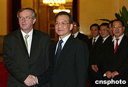 中國國務(wù)院總理溫家寶十一月十二日在北京會見盧森堡首相容克。中新社記者:滿會喬