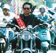 “魔鬼終結(jié)者走上臺(tái)中街頭?”一“立委”候選人顛覆平日的形象,以阿諾施瓦辛格的造型出場(chǎng),引人注目。