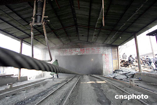 在該礦的副礦口,排風扇正把一股白色的空氣往外排,站在風口,記者明顯感覺到一股潮濕的感覺,一會兒工夫,就有明顯的不適和眩暈。旁邊一位手持儀器的救援人員說,排出來的氣體中,帶著一氧化碳,就是這東西會讓下面的人致命。點了一支煙,吸了兩口居然滅了,再點一次,煙又滅了。副礦口不遠處的主礦口,那邊排出的更像煙氣。