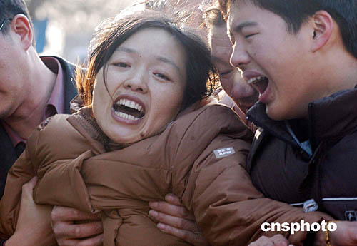 圖:遇難者家屬在空難現場悲痛欲絕