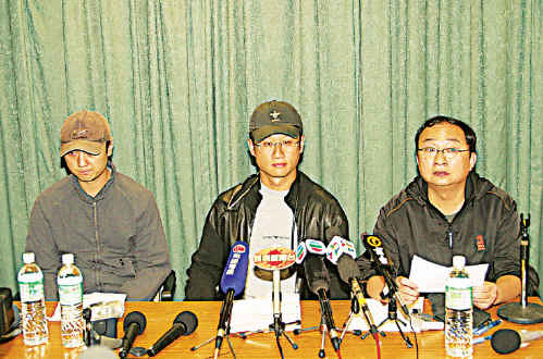 主診醫生(中)及黃霑的兒子黃宇瀚(左)今晨宣布黃的死訊。(香港成報圖)