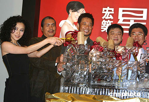 香港著名影星劉嘉玲為臺(tái)北豪宅“星光大道”代言。圖為劉嘉玲(左一)出席十一月二十四日傍晚在臺(tái)北舉行的記者會(huì)。中新社記者:董會(huì)峰