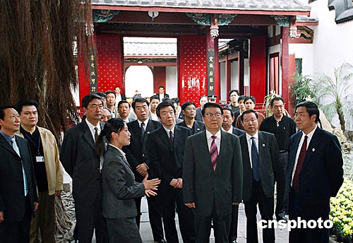 在福建考察工作的中共中央政治局常委李長春,11月25日下午在中共福建省委代理書記盧展工、福州市委書記何立峰等陪同下參觀林則徐紀念館。作者:楊婀娜