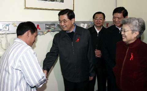 埃菲社報道說,中國國家主席胡錦濤在世界艾滋病日前夕探望了數名艾滋病患者。此舉反映了政府與艾滋病作斗爭的決心。電視轉播的胡錦濤這一舉動正式啟動了政府開展的大型活動。該活動的目的是紀念艾滋病日,同時發出至今仍無法抑制疫情傳播的警報。
