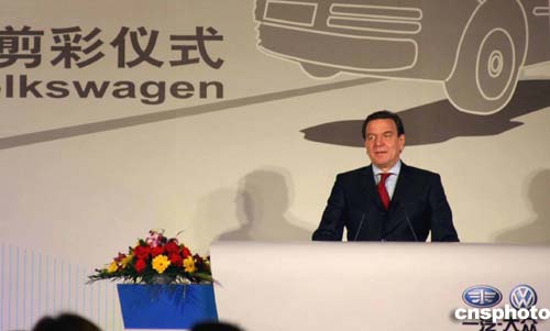 二00四年十二月七日,正在吉林省長春市進行參觀訪問的德國總理施羅德,在中國副總理曾培炎陪同下,為當日正式建成投產的中德合作項目大眾汽車有限公司轎車二廠剪彩。