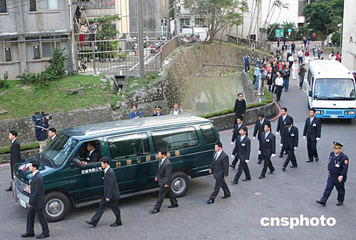 圖為靈車正將遺體送到暫厝的“榮總”懷仁堂。