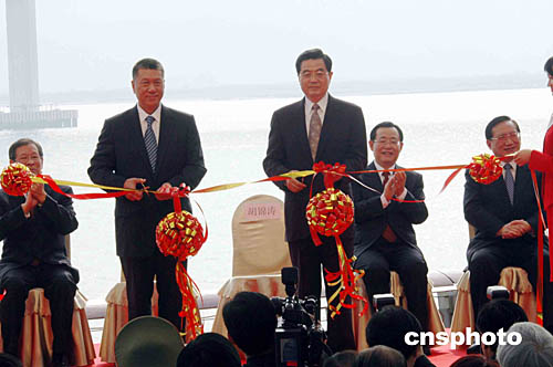 中共中央總書記、國家主席、中央軍委主席胡錦濤,十九日下午在澳門為西灣大橋落成剪彩。中新社記者:宋吉河