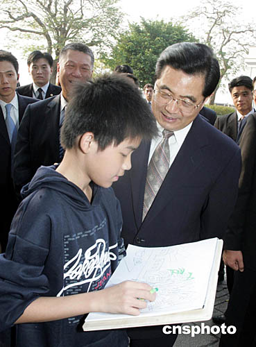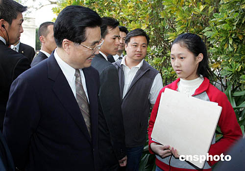 胡錦濤主席在參觀澳門著名景點大炮臺時,與在現場寫生的一位澳門兒童交談,并祝他長大后成為一名畫家。
