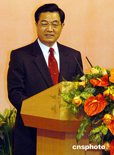 隨后,胡錦濤主席致辭。他說,很高興在澳門回歸祖國五周年的喜慶日子里來到澳門。他代表中央政府,向在座各位,并向全體澳門同胞,致以誠摯的問候和良好的祝愿!