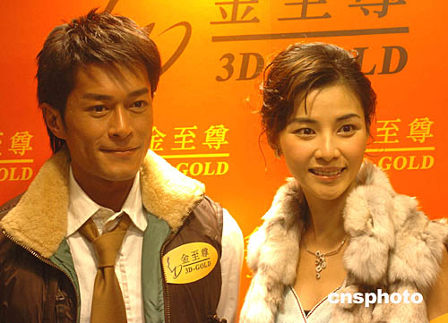 香港影視紅星古天樂﹑蒙嘉慧23日在香港出席金至尊銅鑼灣又一新店的開業儀式