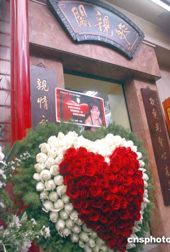 安放梅艷芳靈位的敬親閣外歌迷致送的花牌。作者:鄧慶樂