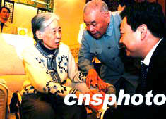 五月十九日,山東省臨沂市在北京人民大會(huì)堂舉行《沂蒙頌歌》大型叢書(shū)贈(zèng)書(shū)座談會(huì),劉少奇夫人王光美等多位老將軍及夫人到會(huì)祝賀。圖為中共臨沂市委書(shū)記李群向王光美表示問(wèn)候。作者:王麗南