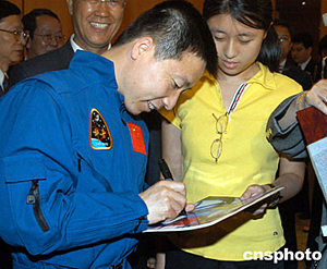 無論楊利偉多么低調(diào),他在紐約僑胞心目中的“英雄”地位絲毫不能動搖。旅美臺胞花俊雄特意讓在臺灣的家人寄來臺灣的茶葉送給楊利偉,新澤西理工學(xué)院的六名女博士生也委托同學(xué)潘錦功帶著她們珍藏的有楊利偉照片的雜志請楊利偉簽名。