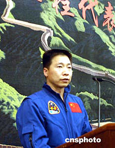 當地時間五月二十一日,中國首飛航天員楊利偉在中國駐美使館舉行的招待會上,向三百多位旅美僑胞講述他乘坐“神舟”五號遨游太空的親身體驗。作者:余東暉