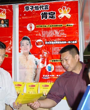 該產(chǎn)品的招商廣告極具誘惑力,為“有章孑怡代言肯定火”。很多市民乍一看以為是章子怡,發(fā)現(xiàn)根本不是一回事后直呼上當(dāng)。