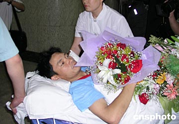 中國政府派專機赴阿富汗接回遭恐怖襲擊受傷的工人,于六月十四日晚十點五十分抵達山東省城濟南國際機場后,即被接送到省立醫院。作者:胡洪林