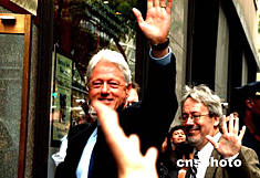 圖為克林頓中午走進(jìn)曼哈頓中城的巴恩斯·諾布爾書店參加三個(gè)多小時(shí)的簽名活動(dòng)。