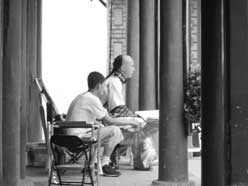 大約下午3時,記者來到《紀曉嵐3》劇組另一組拍攝場地。可能這一組沒有張國立的緣故,記者在靠近攝像機時并無人阻攔。過了10分鐘左右,身穿白色戲服、留著清代長辮的張默突然來到攝像機旁詢問工作人員:“我爸呢?他在拍戲嗎?”得知張國立在其他分組拍戲后,張默很快走出,并向記者先前探訪張國立拍戲處走去。記者緊跟其后,張默來到《紀曉嵐3》道具車旁時,記者喊了他的名字,他頭也不回,直接快步走了進去,很久都未出來。記者后來才得知他從院子側(cè)門溜回了《少》劇組。