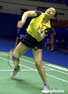 中國羽毛球隊女雙隊員黃穗(前)、上屆奧運會混雙冠軍高崚,十五日在湖南益陽訓練基地緊張訓練,備戰雅典奧運會。中新社記者:宋吉河  趙婷婷緊張備戰雅典奧運。中新社記者:宋吉河