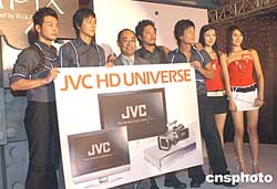 影星連凱、吳彥祖、陳子聰、尹子維8月6日在香港出席日本電氣品牌JVC舉行新一代等離子電視新聞發布會,四人攜手為該產品代言,并于發布會上與JVC香港總代理合照。作者:鄧慶樂