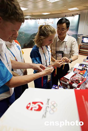 另一位叫威廉姆斯的女孩用很標(biāo)準(zhǔn)的漢語(yǔ)說(shuō):“北京很好,我喜歡北京。”原來(lái),兩年前威廉姆斯曾到中國(guó)工作四個(gè)月,對(duì)中國(guó)留下了深刻的印象。她對(duì)北京奧組委提供的中國(guó)結(jié)和中國(guó)京劇臉譜愛(ài)不釋手。