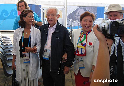 八月九日上午九時(雅典當地時間),薩馬蘭奇看望出席升旗儀式的中國代表團。作者:李孝諄