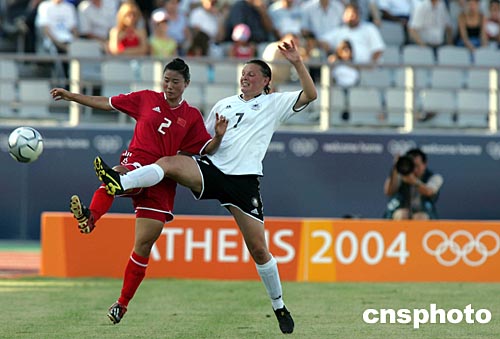 中新社雅典八月十一日電 相信賽前沒有人會想到,世界女子足壇勁旅中國隊竟會在今天于此間帕特雷市十八點(當(dāng)?shù)貢r間)開賽的雅典奧運會F組首輪比賽中以零比八的懸殊比分潰敗于世界冠軍德國隊,這無論是在中國女足歷史上抑或是奧運女足賽歷史上都似乎是前所未有的。