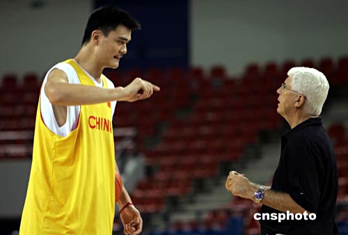 當地時間八月十二日下午,剛剛抵達雅典的中國男籃在雅典郊外的奧運會籃球館訓練。中新社記者:任晨鳴