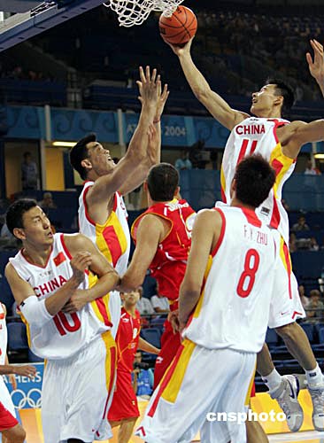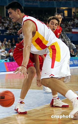 中新社雅典八月十五日電(記者 王祖敏)當地時間今天下午,中國男籃在奧運會小組賽的首戰中,以五十八比八十三慘敗于西班牙隊,小巨人姚明上場二十七分鐘獲得十二分,在第四節因為犯規累計達到五次被罰下,而西班牙球星加索爾獲得全場最高的二十一分。