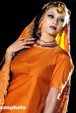 8月15日,在慶祝巴基斯坦國慶57周年活動上,模特演繹巴基斯坦頂尖時(shí)裝設(shè)計(jì)師Amna Malik的作品。