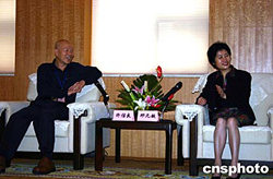 六十名臺灣地方知名人士訪問重慶并參加“巴渝--三峽文化交流”活動,八月十六日上午重慶市委副書記邢元敏、重慶市副市長吳家農等會見其中部分人士。圖為邢元敏與臺灣知名人士許信良親切交談。作者:郭晉嘉