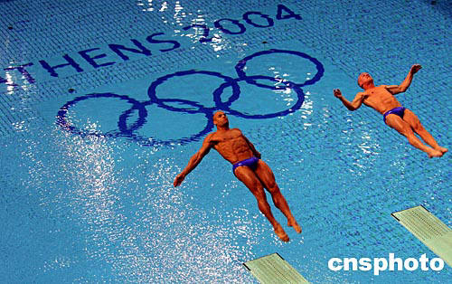 當(dāng)?shù)貢r間8月16日晚在雅典奧運會跳水館,世界各國選手為實現(xiàn)各自的奧運夢想而從十米跳臺縱身躍入湛藍的碧波之中。中新社記者:任晨鳴