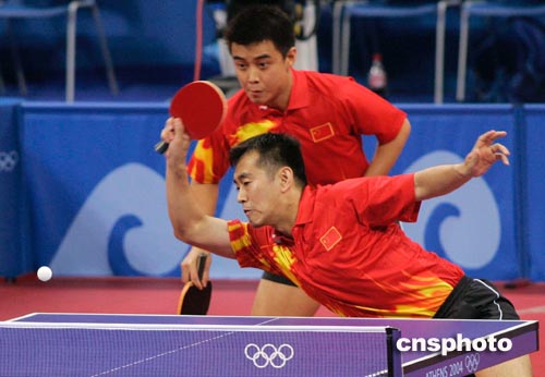 中新社雅典八月十八日電 在近期的一系列比賽中戰(zhàn)績最佳的中國乒乓球男雙組合王皓/孔令輝今天出人意料地在爭奪奧運會八強席位的比賽中敗在了英雄遲暮的瑞典老將瓦爾德內爾、佩爾森拍下,爆出一大冷門。