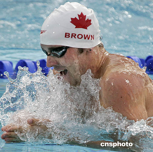 圖為在當(dāng)?shù)貢r(shí)間8月18日舉行的男子200米仰泳和蛙泳的比賽中,加拿大選手的出色表現(xiàn)。