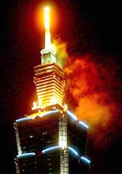 據臺“中國時報”報道,6日晚間7點,臺北消防人員接報101大樓89層處有大量白煙冒出,但經他們到現場察看后,研判可能只是純粹云層飄過造成的錯覺而已。但這幅畫面也意外形成一幅臺北101有趣的景像。
