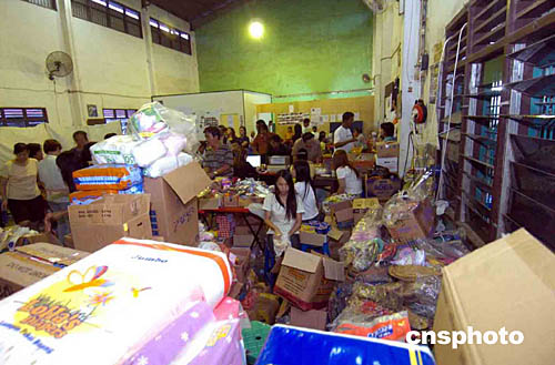 印度尼西亞華族團體的救援物資源源不斷送到在棉蘭市的難民收容所,大批義工挑燈夜戰分配物資,將生活必需品及時送到災民手中。作者:洪少葵