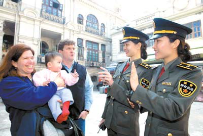 由于沙面是領館區,很多外國人在此生活,所以隊員們的英語都是“一級棒”。據了解,這8名女隊員中,4人達到大學英語6級水平,2人達到專業英語8級水平,其他隊員至少也達到大學英語4級水平,能和外國人進行日常英語口語交流。(文/楊進、陳穗華、張文濤;圖/王燕)