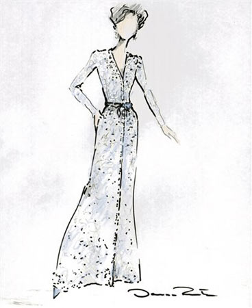 白宮提前公布了總統夫人與女兒當日出席布什就職典禮時所穿的禮服草圖。