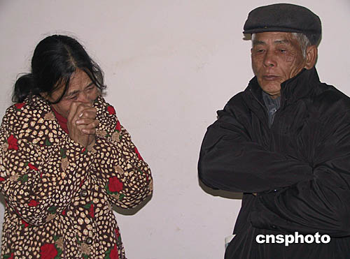 一月十九日,福建平潭十九歲勞工魏武在伊拉克被武裝分子綁架,其母薛金嬌(圖左)在接受記者采訪時希望中國政府能盡快救出其子。圖為當地老人在魏家勸慰一直哭泣的薛金嬌。作者:王東明