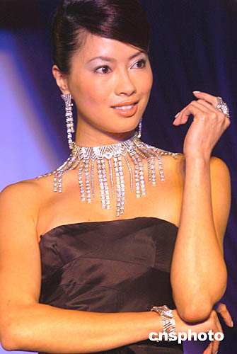 香港恒豐金業(yè)科技集團與恒基兆業(yè)地產(chǎn)有限公司21日晚在香港國際金融中心舉行《豪宅金鉆耀全城》活動﹐名模展示名貴珠寶鉆飾。中新社記者:趙振清