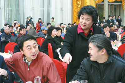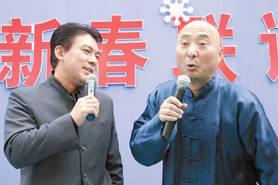 昨天,華彬大廈一層的大廳里,人聲鼎沸,笑聲不斷。在這里人們不僅見到劉蘭芳、馮鞏、李金斗、李文華、常寶華、孟繁貴等曲藝界的大腕們,同時也見到了陳佩斯、朱時茂、劉曉慶、劉歡、梁天等這些看上去原本沒有關系的演藝界明星們。聯誼會的當家主持是中國曲藝家協會分黨組書記、相聲名家姜昆以及相聲演員孟繁貴。連主持人都是相聲演員,您說這樣的會議能不熱鬧?上面抖著“包袱”主持會議,底下你一言我一語地接話茬兒,聯誼會始終洋溢著笑聲和掌聲。