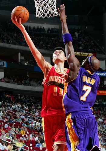 第二節(jié)比賽開始后,湖人打出一波攻擊,將比分差距縮小到37-34。不過關鍵時候姚明再次發(fā)威,連續(xù)得分將比分差距再次拉大,在半場結束時以50比39領先。