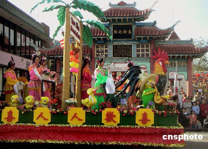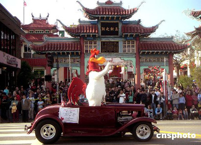 ·圖:雞年賀歲彩車駛過洛杉磯唐人街 (2005-02-13)