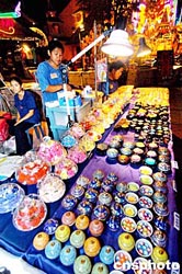 15日晚的泰國布吉島一旅游點上,售賣工藝品攤點正常營業。海嘯地震過后,這里旅游業正在逐步復蘇。作者:宋吉河